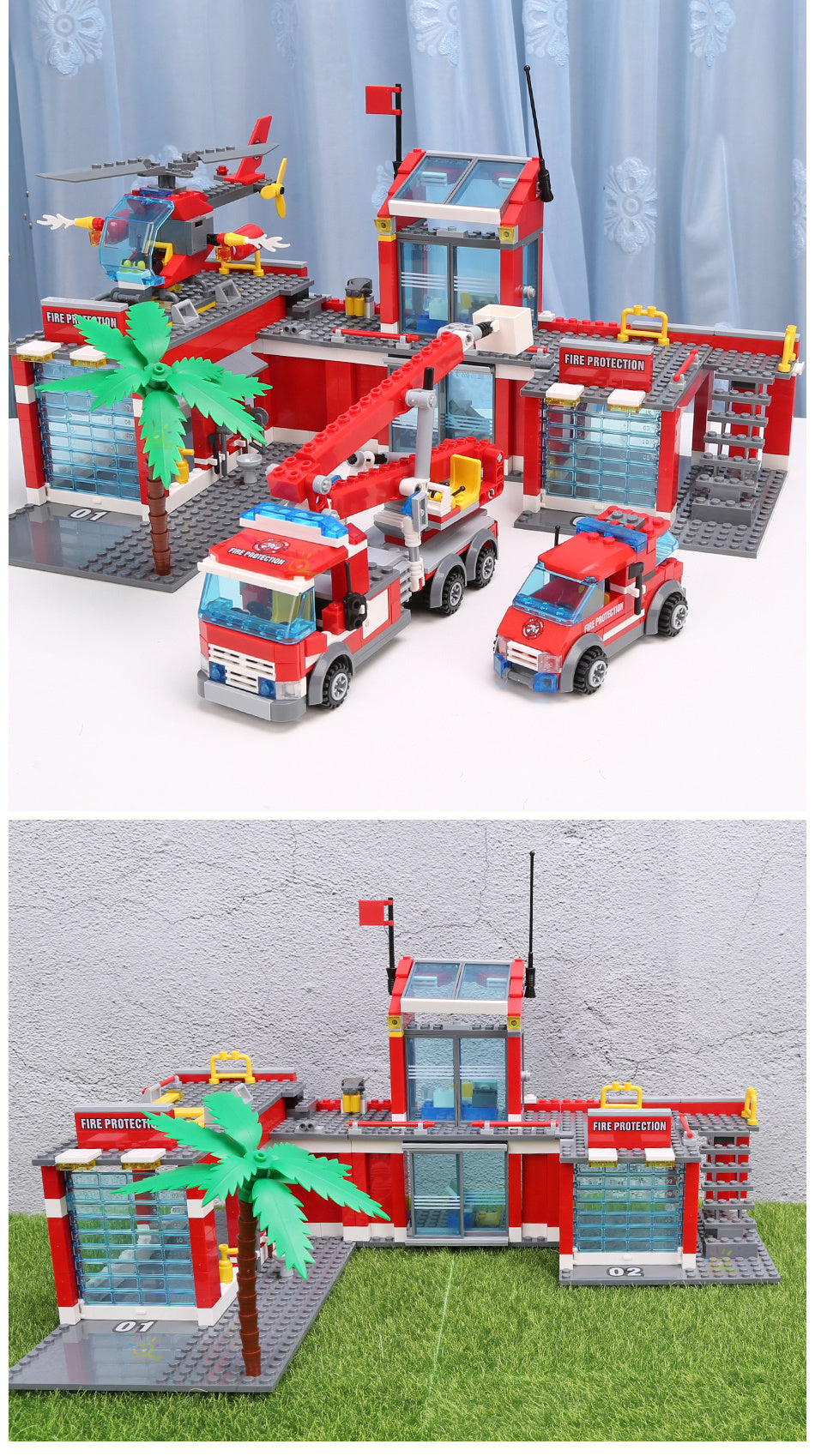 - Fire Station Model Building Blocks City Construction Firefighter Truck Educational Bricks Toys Child